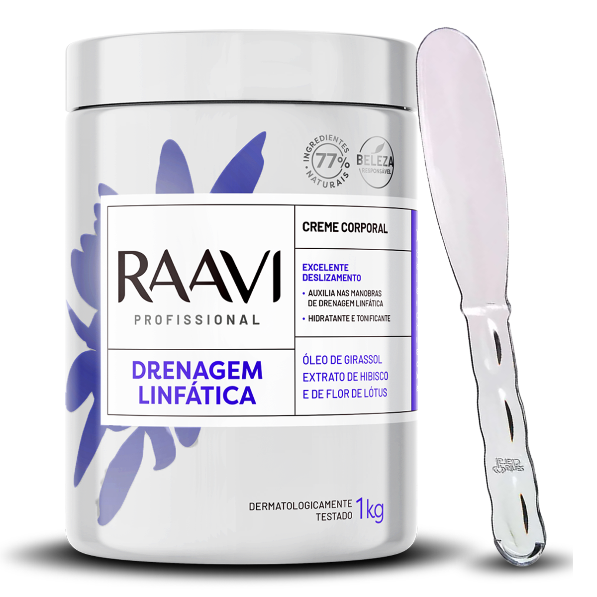 DESCRIÇÃO: Creme para Drenagem Linfática Raavi 1kg + Espátula Acrílica Santa Clara (M)