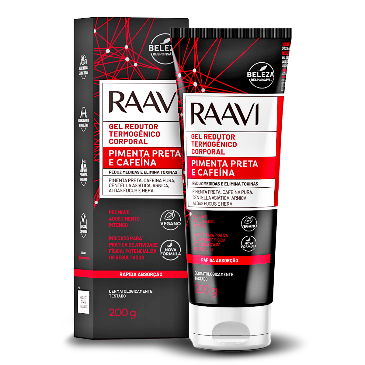 DESCRIÇÃO: Gel Redutor Termogênico Pimenta Preta Cafeína Raavi 200g (Termoativo Corporal)